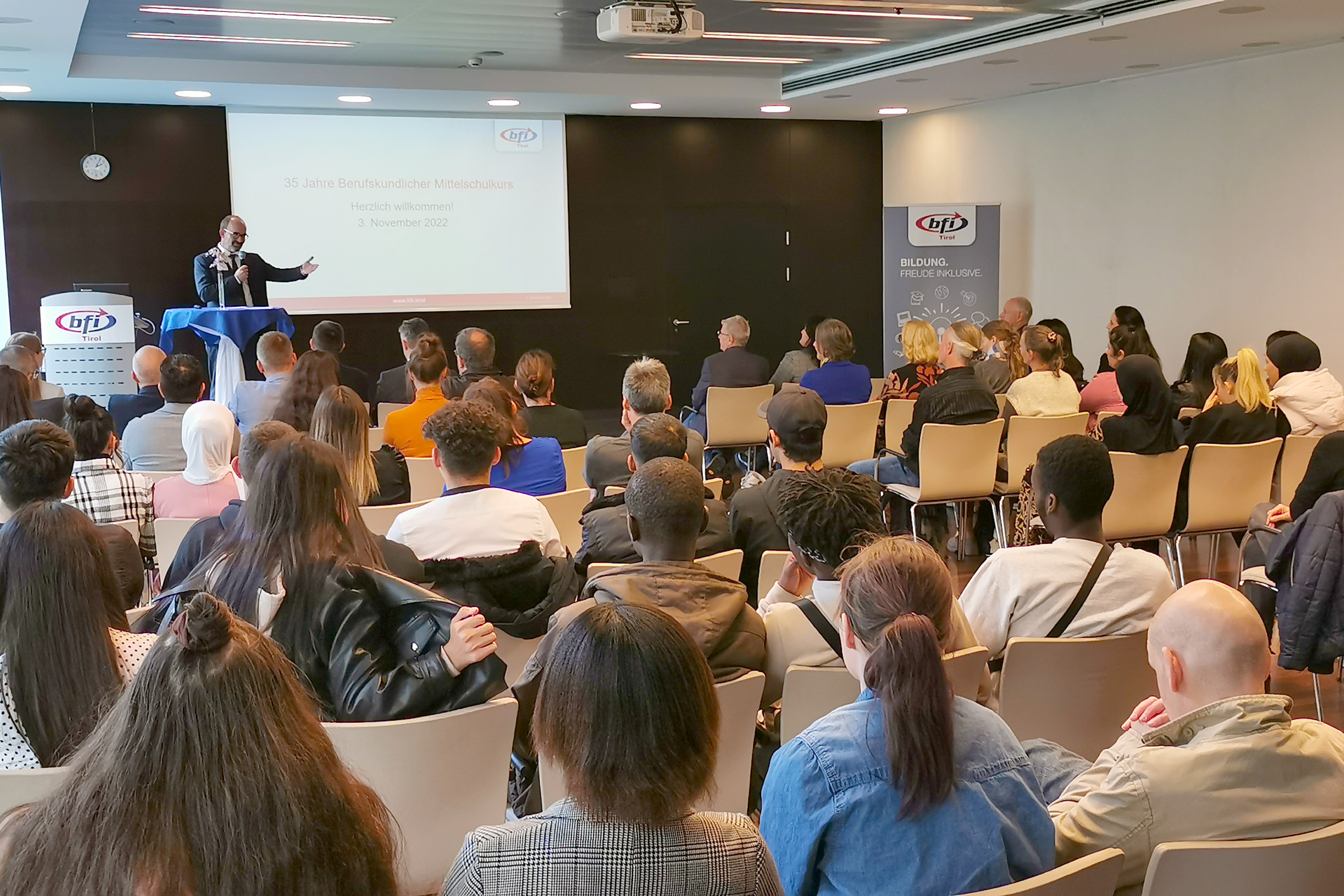 Bereits seit 1985 werden die Berufskundlichen Mittelschulkurse am BFI Tirol für Jugendliche ohne Mittelschulabschluss organisiert und angeboten. Die Mittelschulkurse werden im Auftrag des AMS Tirol durchgeführt und ermöglichen das Nachholen dieses Abschlusses, der die Grundlage für weitere Ausbildungen darstellt. Bereits 2020 hätte das Jubiläum gefeiert werden sollen, pandemiebedingt wurde die Feier erst jetzt nachgeholt.