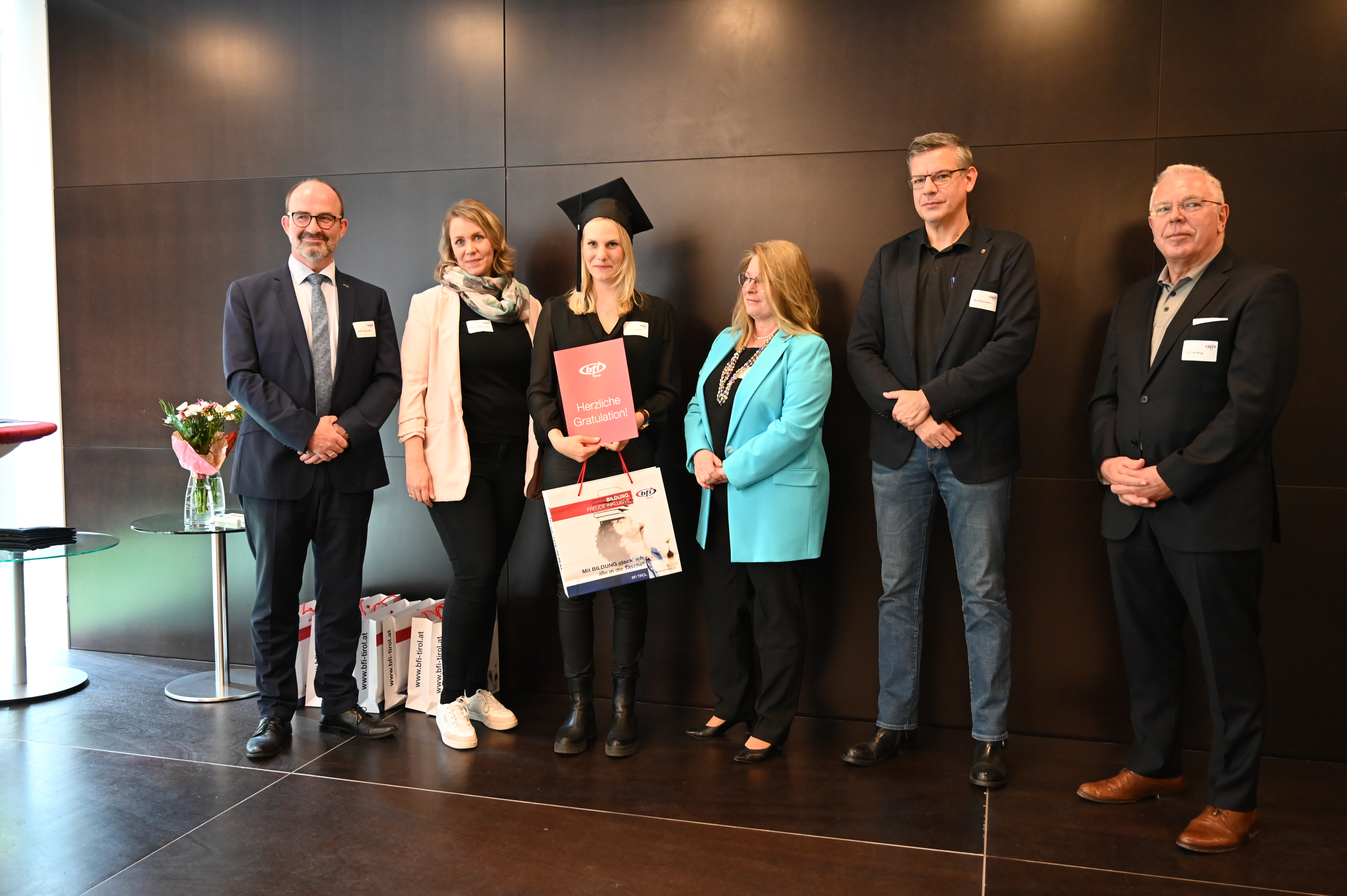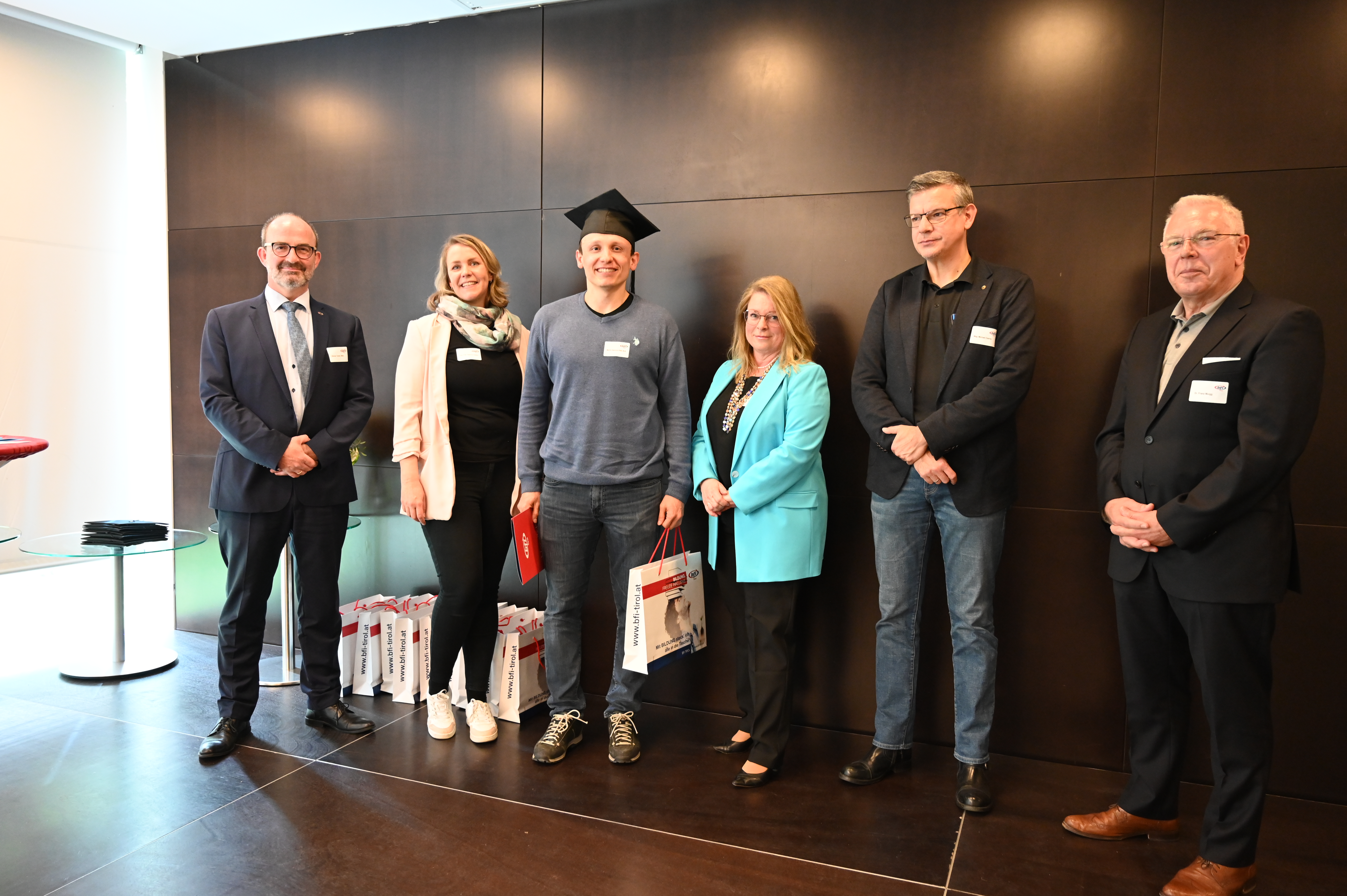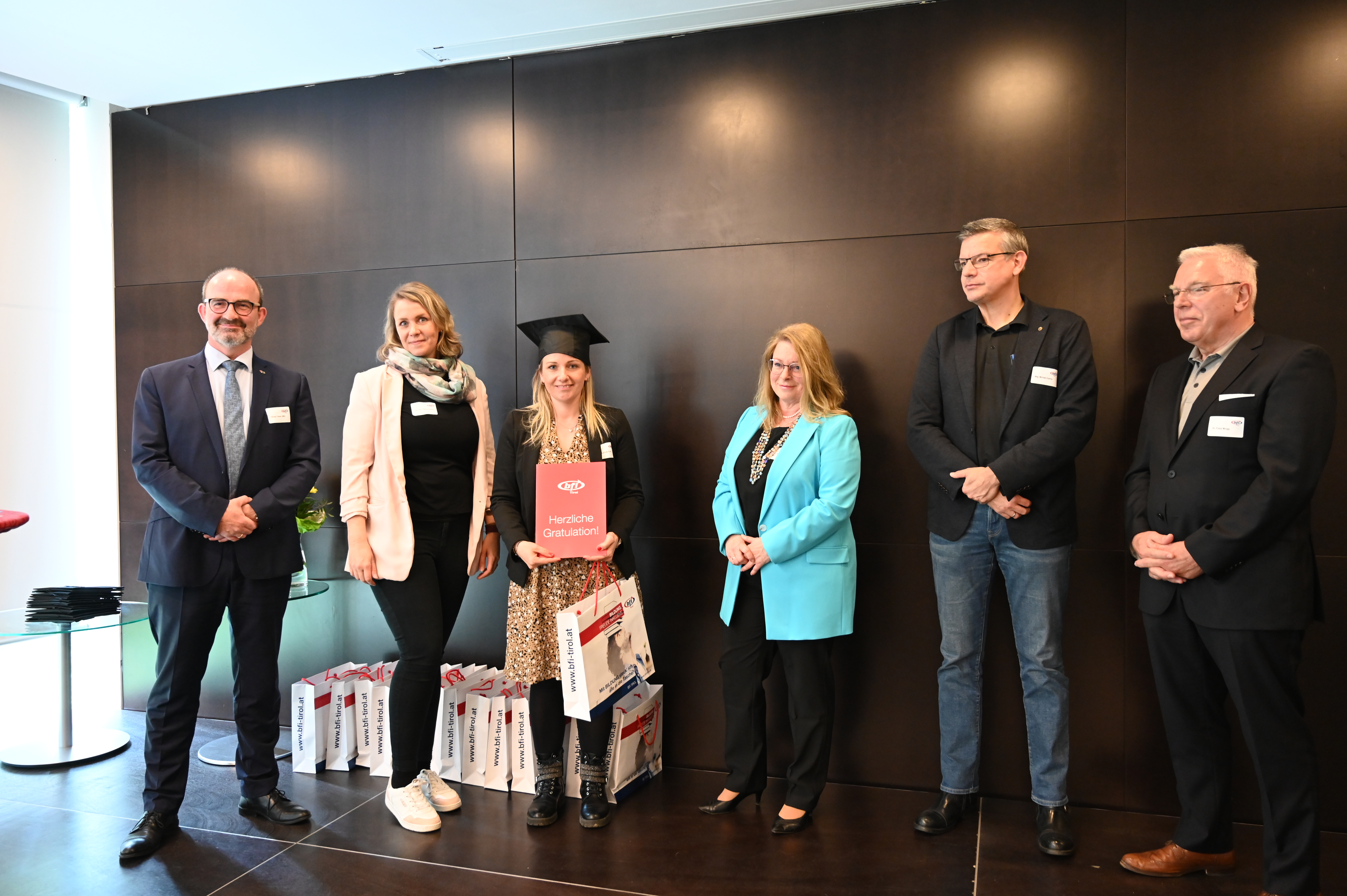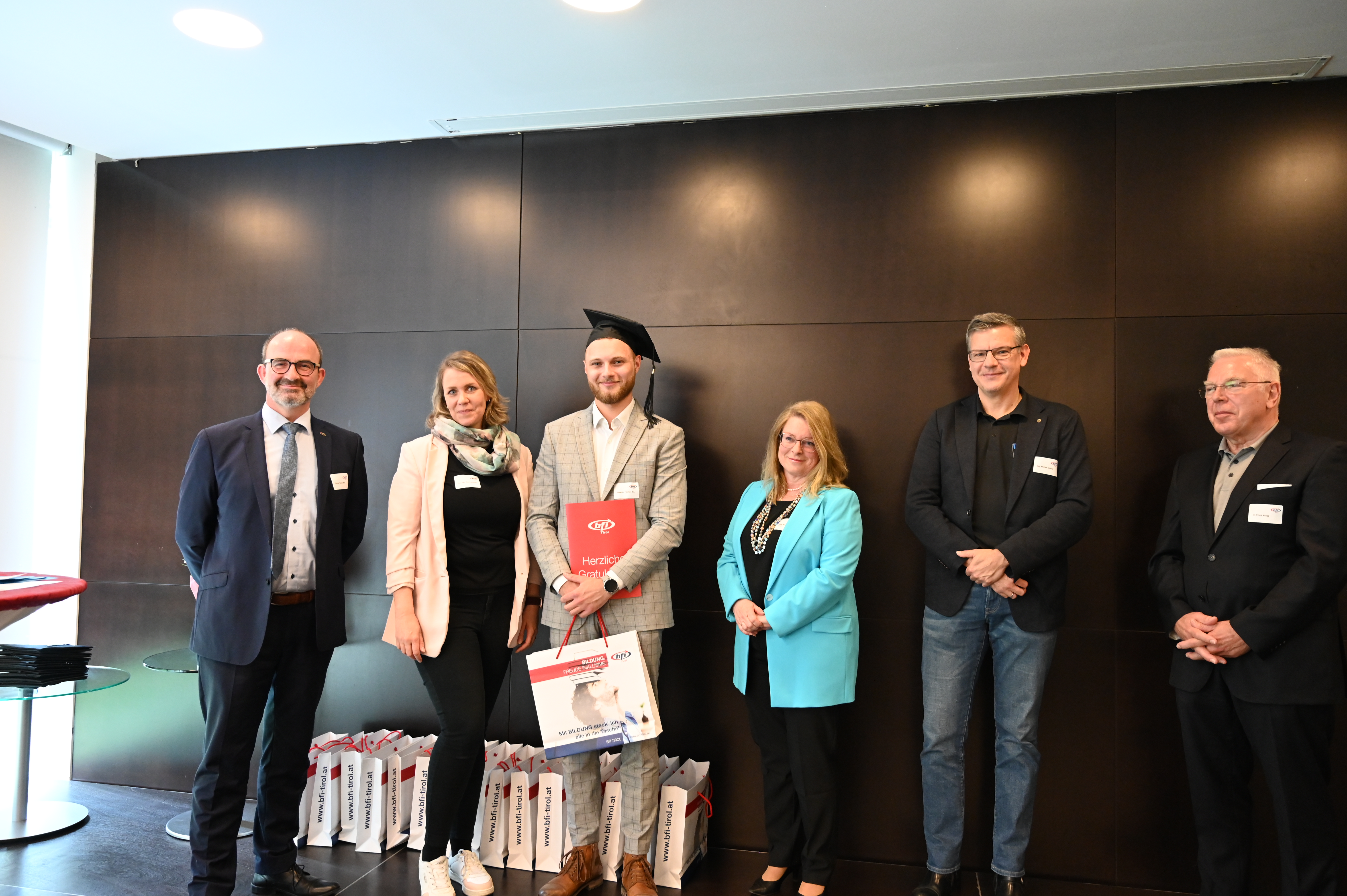 Am 12. Mai fand die erste Absolvent_innenfeier nach Corona am BFI Tirol in Innsbruck statt. 17 Absolvent_innen sind der Einladung gefolgt und haben gemeinsam mit Lehrbeauftragten, Geschäftsführer Othmar Tamerl, MBA und Studienzentrumsleiterin Dipl.-Päd.in Sabrina Halász die herausragenden Leistungen gefeiert.