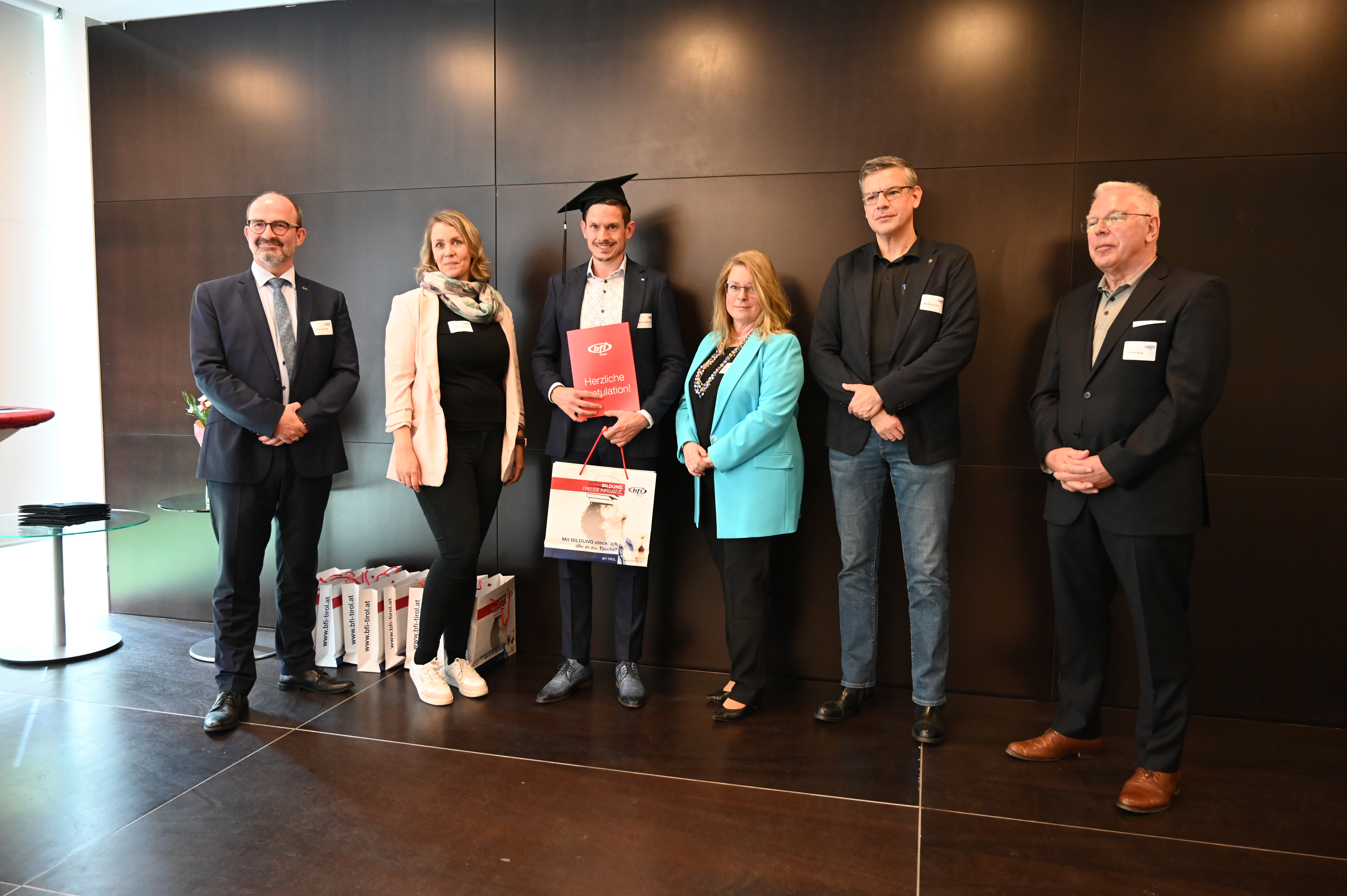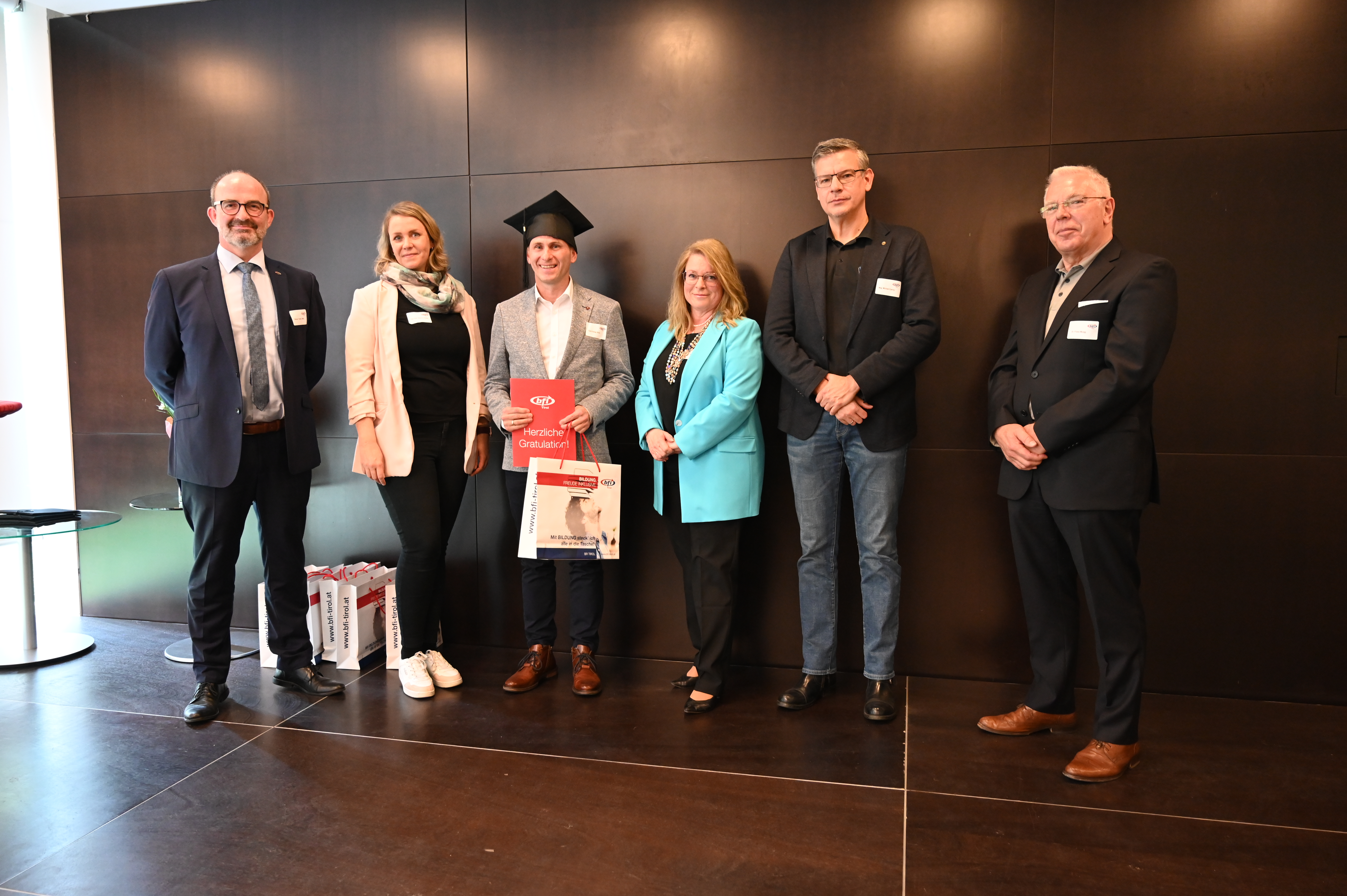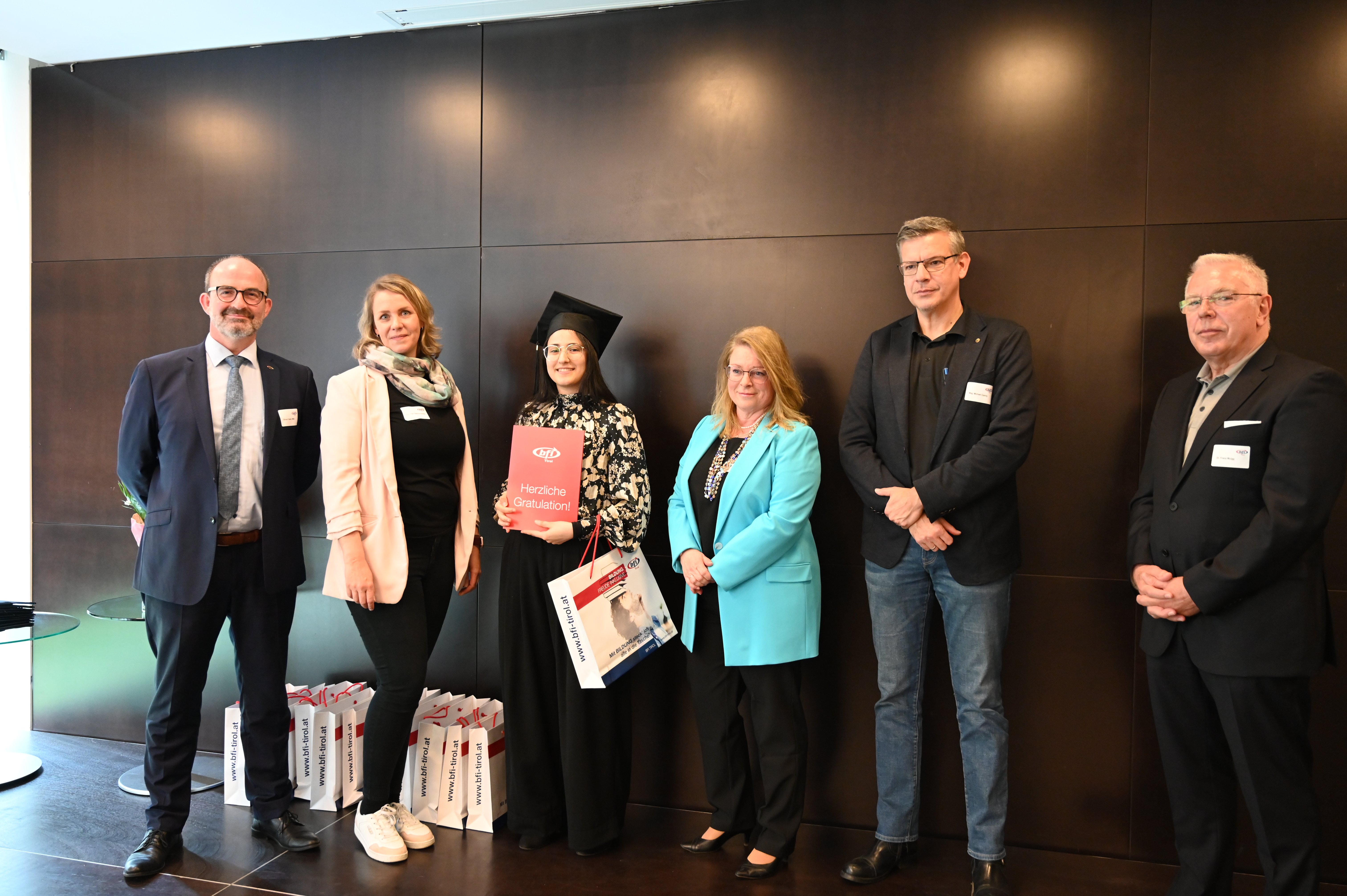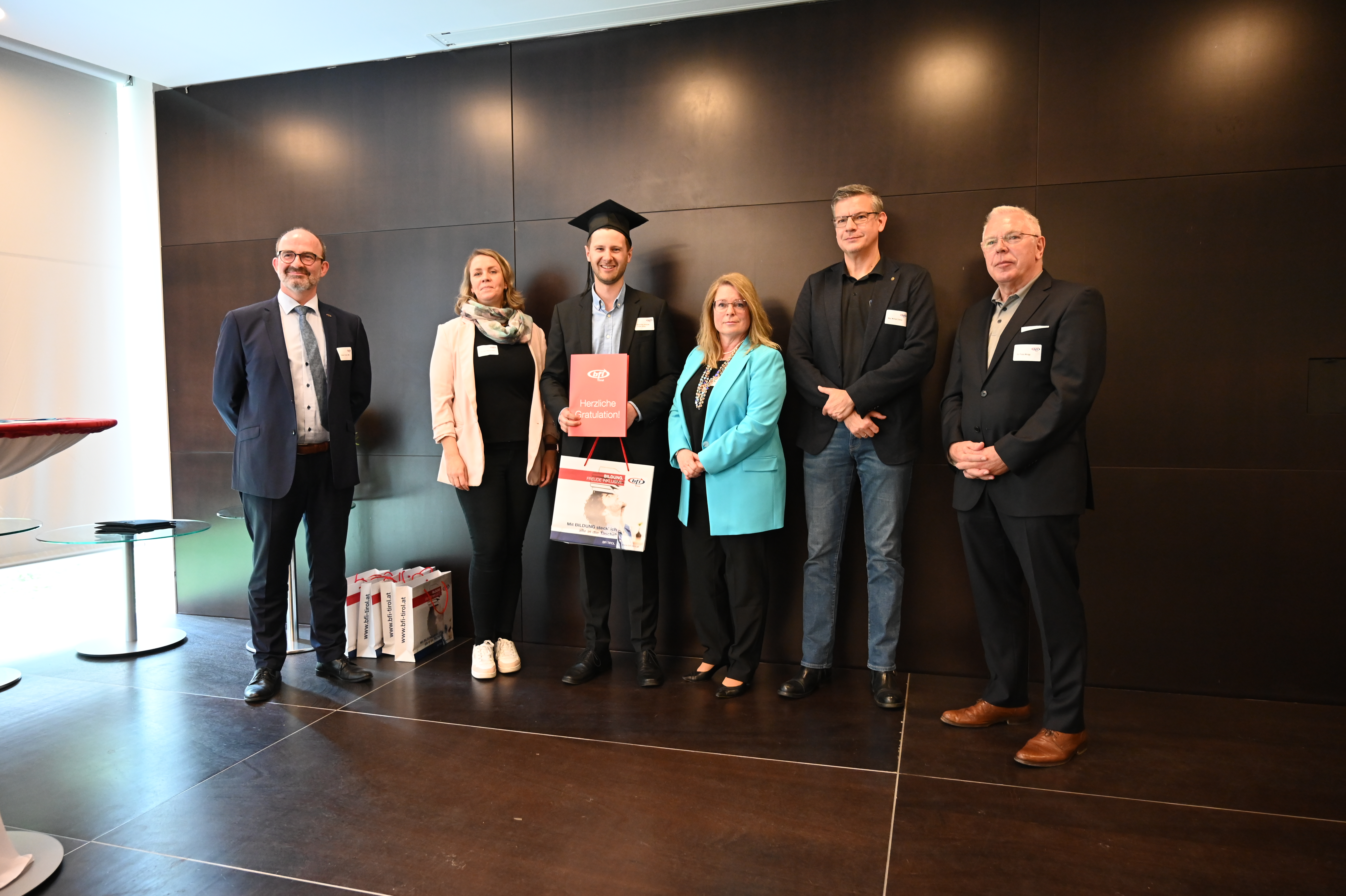 Am 12. Mai fand die erste Absolvent_innenfeier nach Corona am BFI Tirol in Innsbruck statt. 17 Absolvent_innen sind der Einladung gefolgt und haben gemeinsam mit Lehrbeauftragten, Geschäftsführer Othmar Tamerl, MBA und Studienzentrumsleiterin Dipl.-Päd.in Sabrina Halász die herausragenden Leistungen gefeiert.