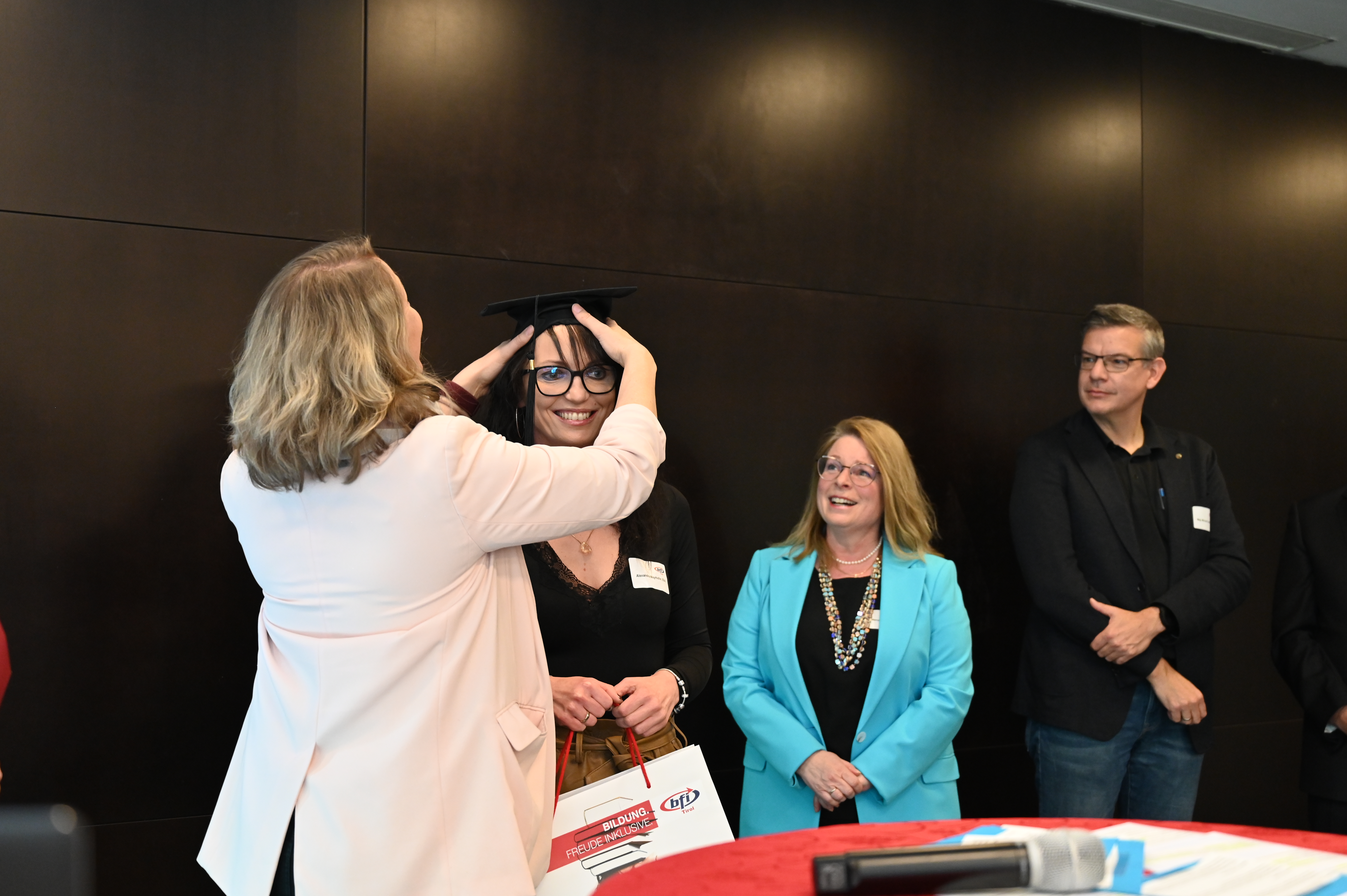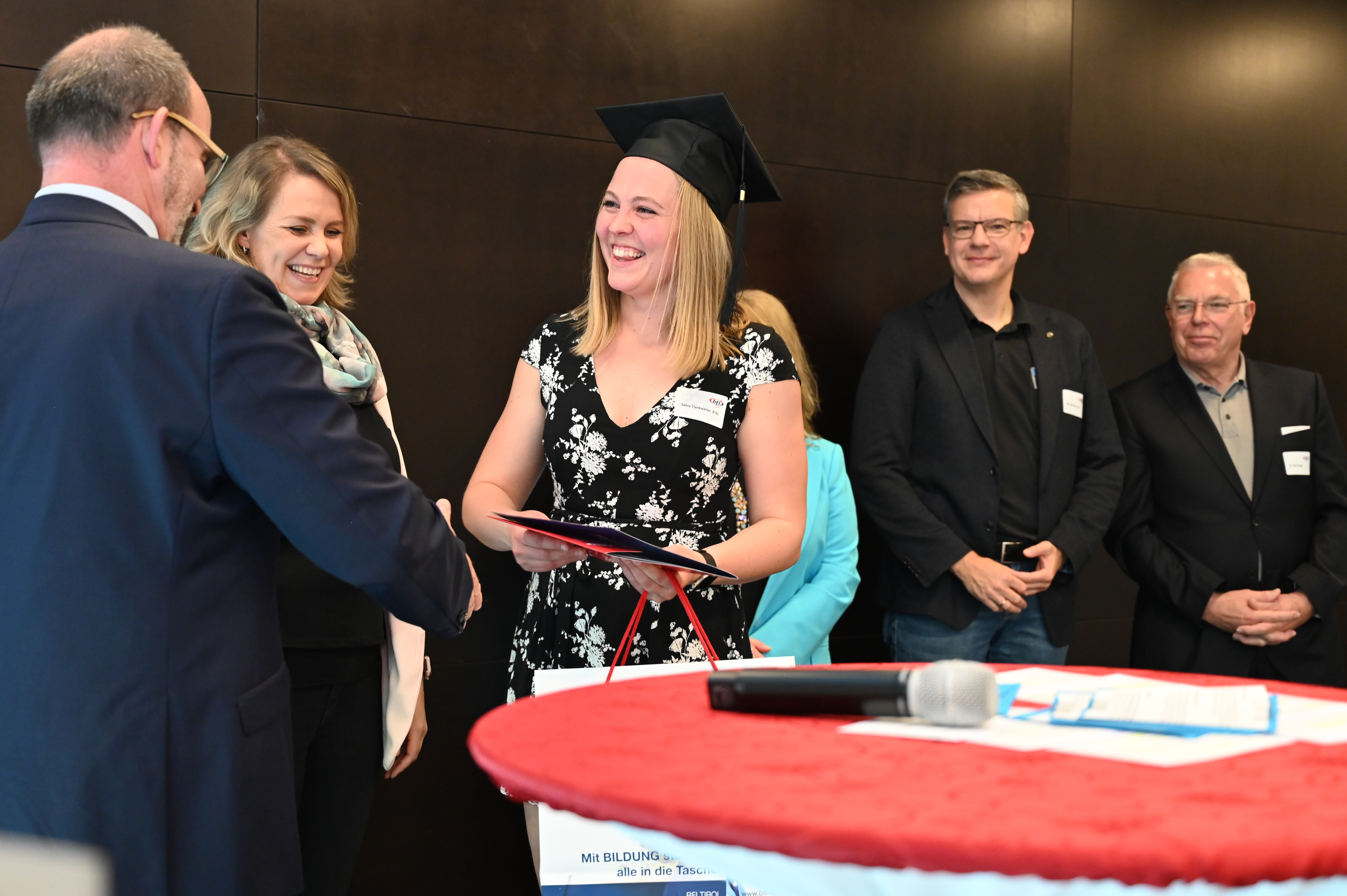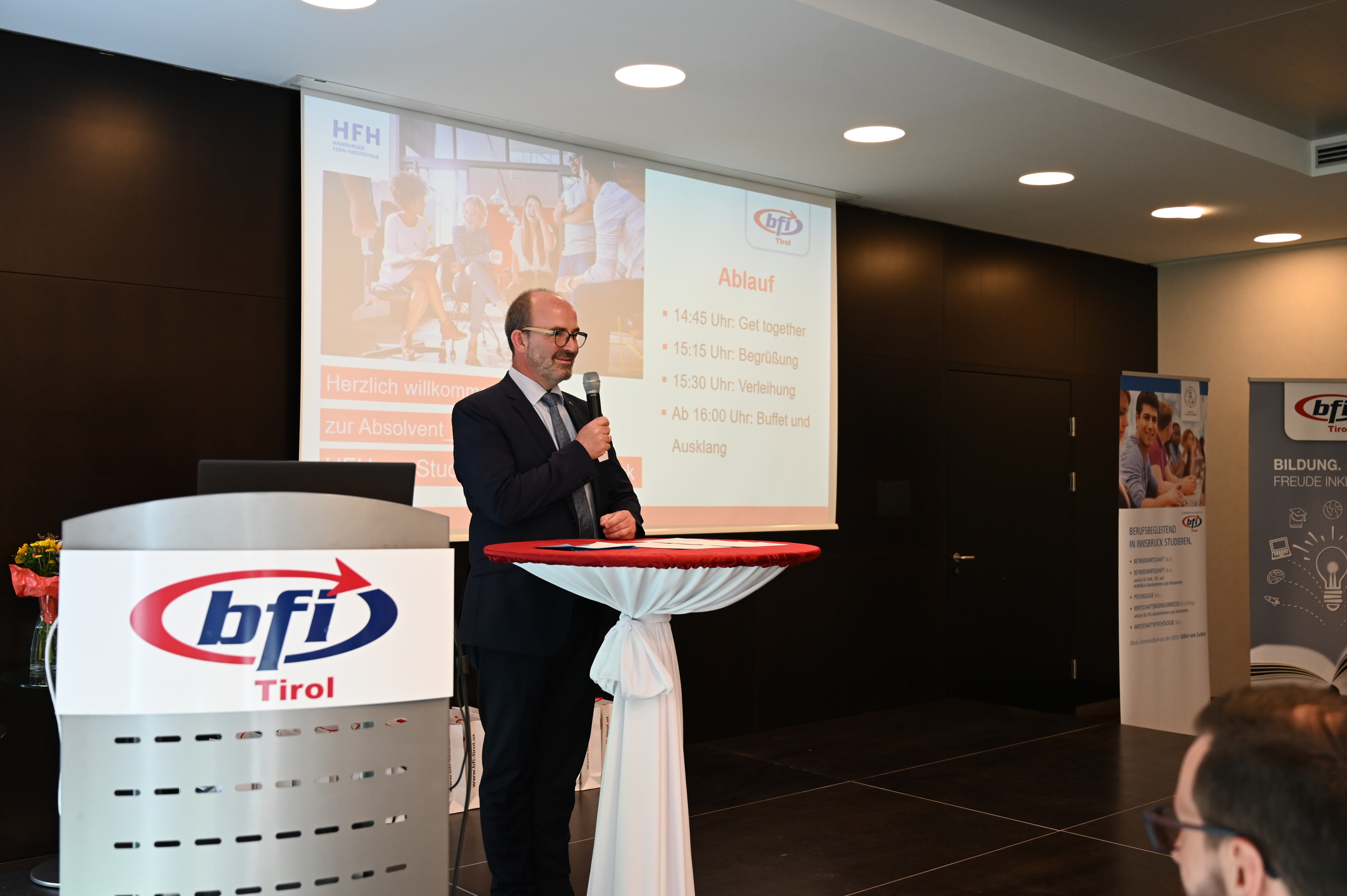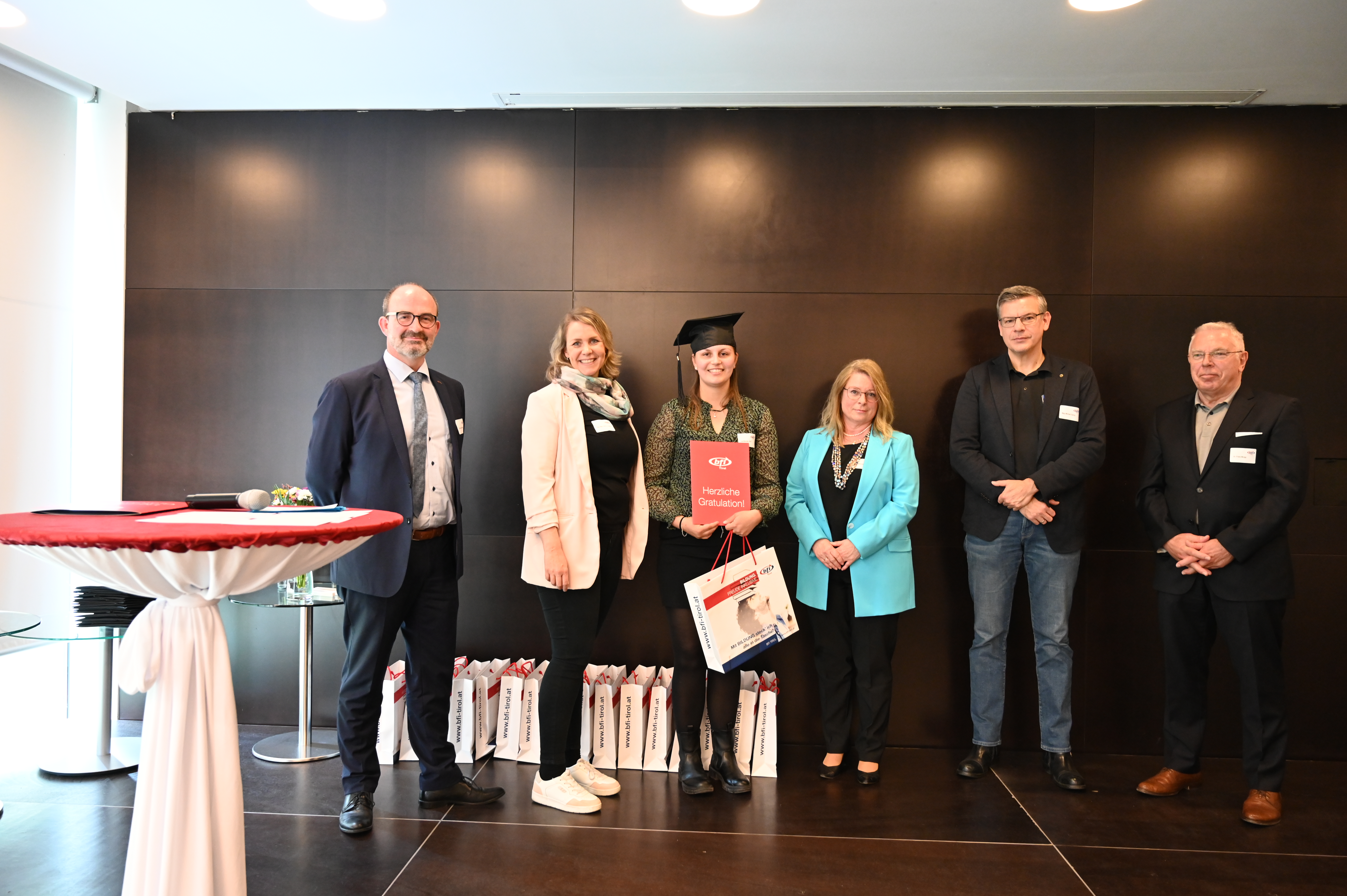 Am 12. Mai fand die erste Absolvent_innenfeier nach Corona am BFI Tirol in Innsbruck statt. 17 Absolvent_innen sind der Einladung gefolgt und haben gemeinsam mit Lehrbeauftragten, Geschäftsführer Othmar Tamerl, MBA und Studienzentrumsleiterin Dipl.-Päd.in Sabrina Halász die herausragenden Leistungen gefeiert.