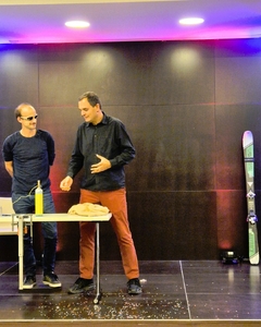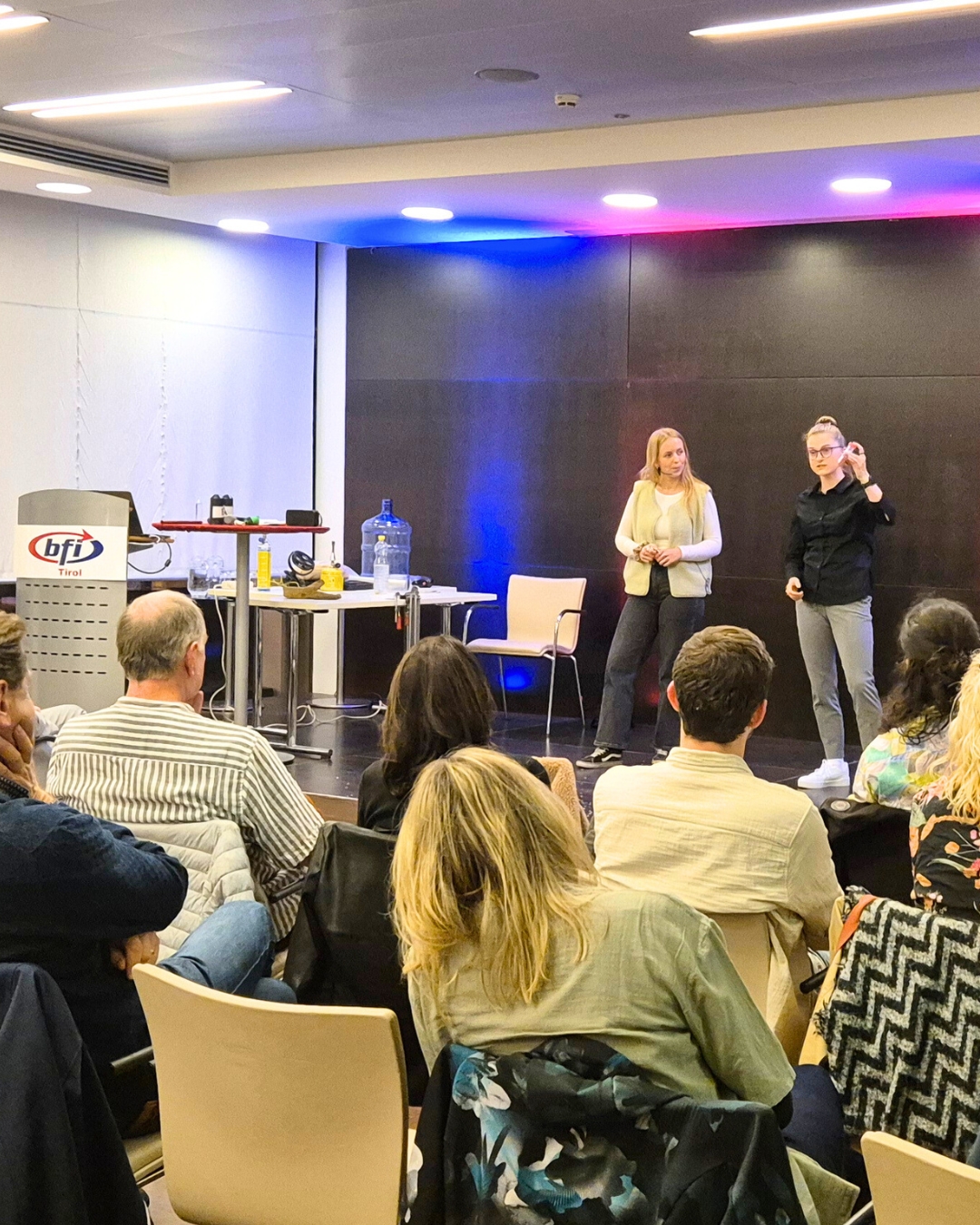 - Judith Schobel und Sophie Groche (Umwelttechnik, Universität Innsbruck und MCI Innsbruck) zeigten in „Vom Outdoorspaß zum Umweltfraß - mit PFAS“, wie Mikroplastik unsere Umwelt beeinflusst und was jede_r dagegen tun kann.